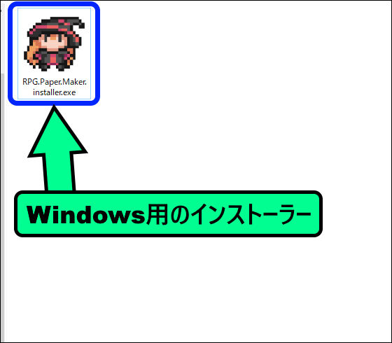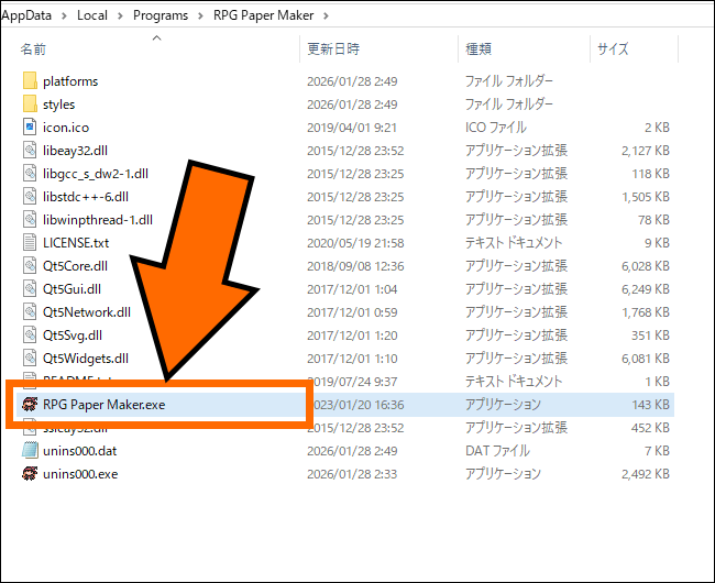 インストールしたフォルダ内にある「RPG Paper Maker.exe」をクリックします。