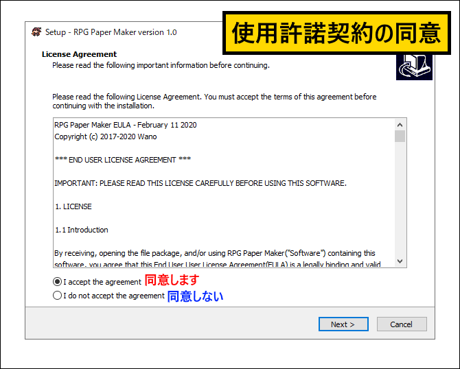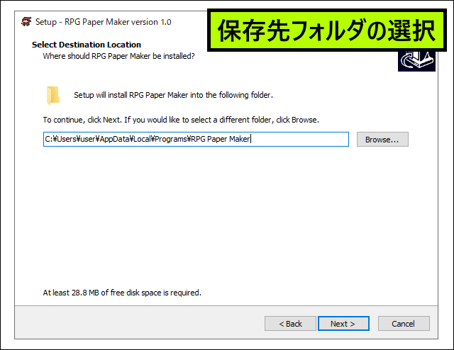 RPG Paper Makerのインストールが開始されます。