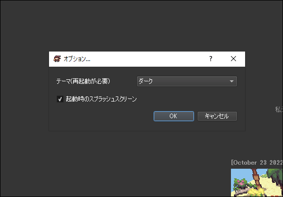 また、[オプション]ではテーマを変更したり、