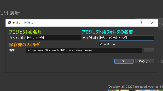 ゲームファイルの新規作成