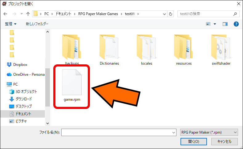 そのフォルダ内にある[rpm]ファイルを選択すると、ゲームファイルが開きます。