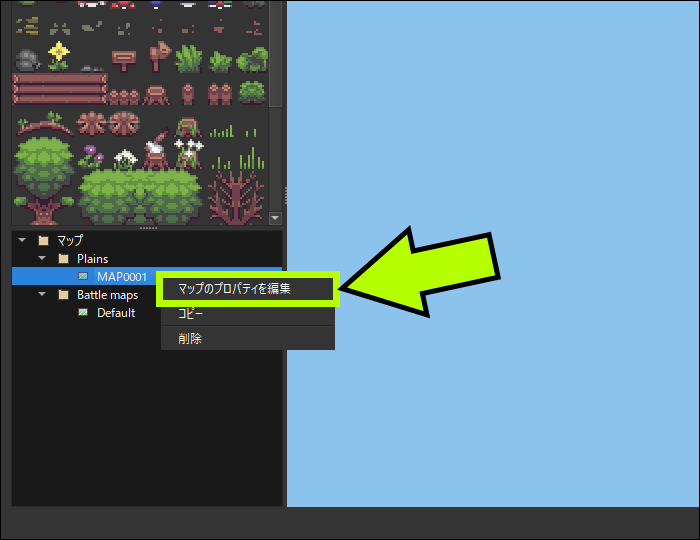 まず、[MAP0001]を右クリックして「マップのプロパティを編集」を選択します。