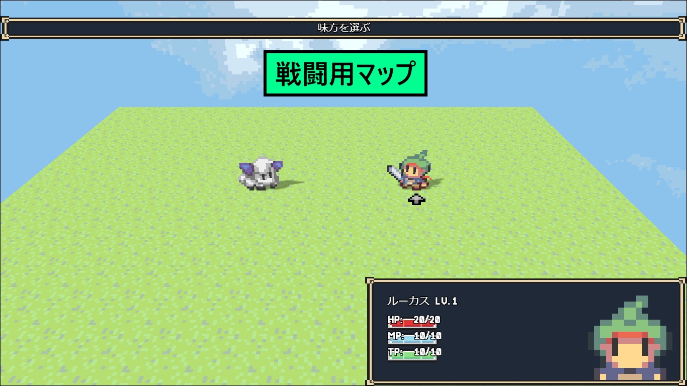 エンカウントすると、「戦闘用マップ」に移動してから戦闘が始まります。