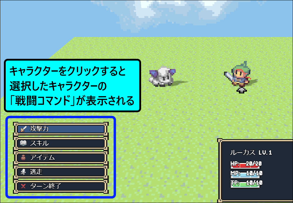 コマンドを選択すると、その行動を即座に行います。