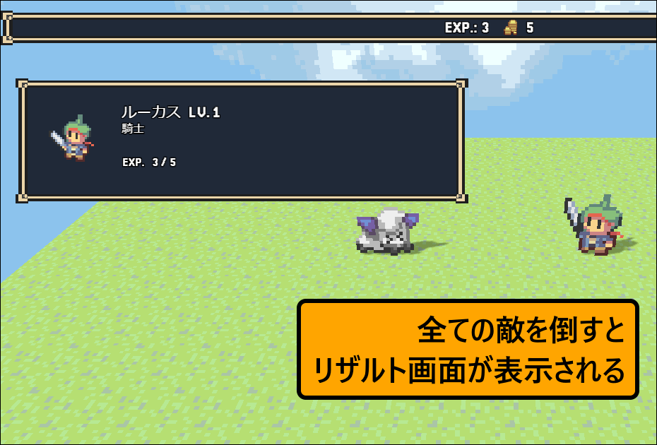 取得経験値などが確認でき、その後に元のマップへ戻ります。
