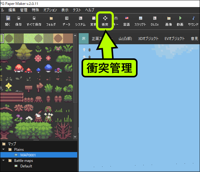 ここではタイルセット以外に、キャラクターや特殊なタイルの衝突判定も設定できます。