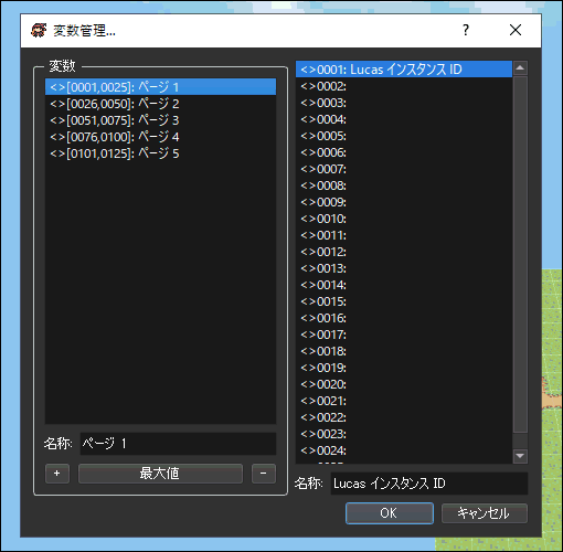 ゲーム内で自由に使用できる「変数」を管理する項目です。