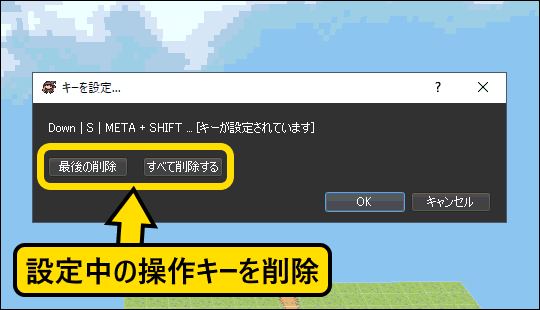 左下にあるボタンを押すと、設定中の操作キーが削除されます。