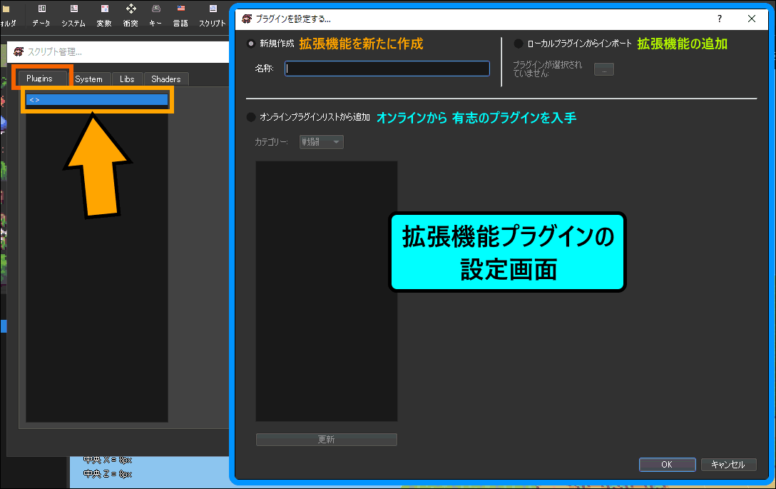 また、「プラグイン」の空き項目をダブルクリックすると、拡張機能の設定画面が表示されます。