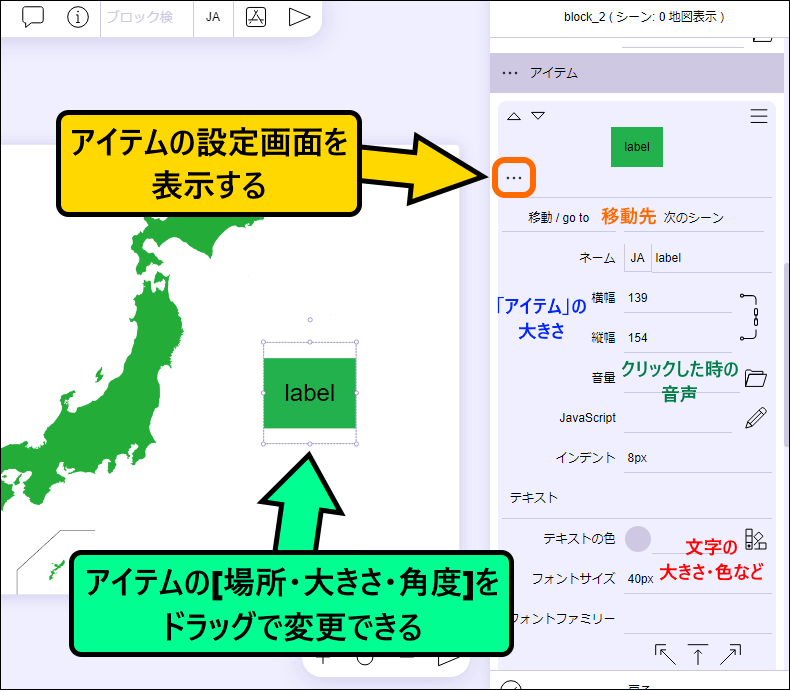 アイテムの設定画面が表示されて、「見た目」「移動先のブロック」などが設定できます。