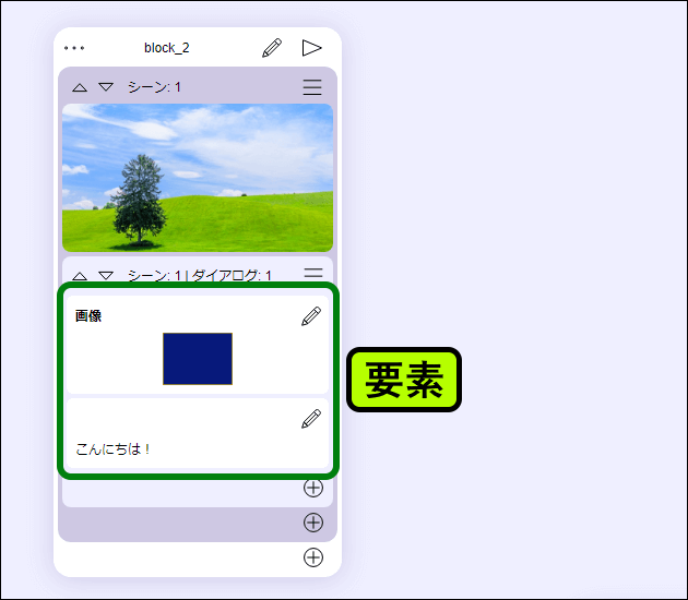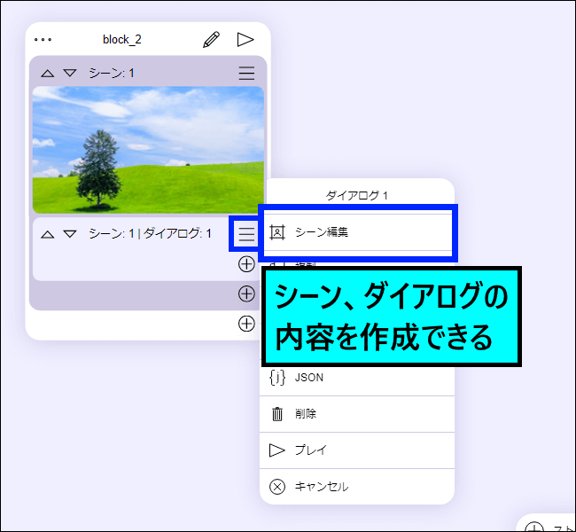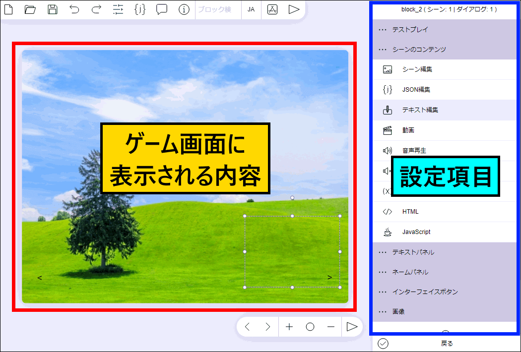 「シーン」は、基本的なゲーム内容を作成するための機能です。