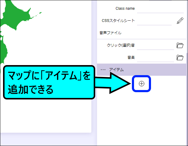 [アイテム]にある[+]をクリックすると、「アイテム」が追加されます。